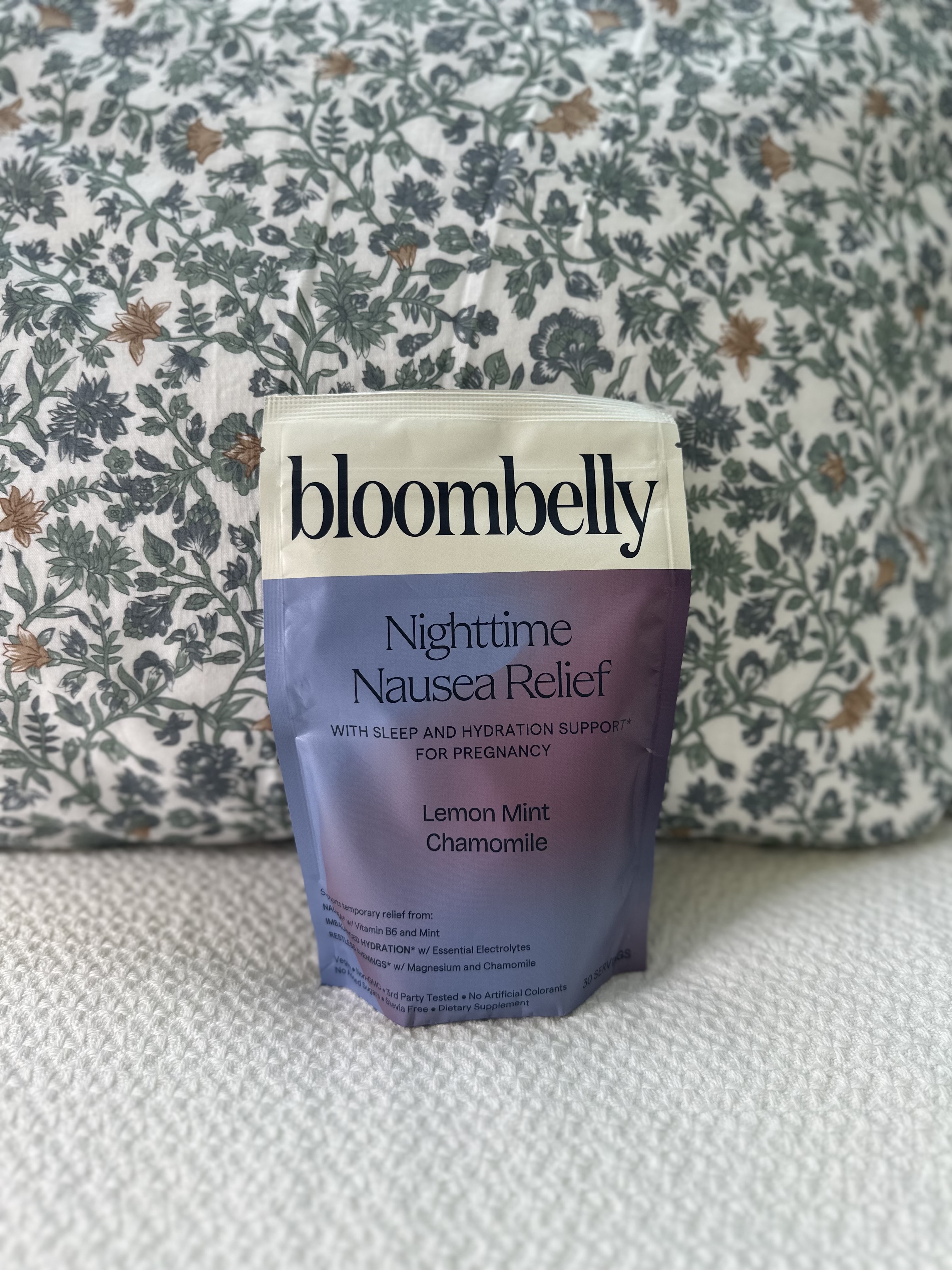 Pregnancy nausea doesn’t clock out after 5 PM. bloombelly uses clinically studied Vitamin B6, Lemon and Mint to help relax your stomach and reduce nighttime nausea — so you can unwind without the discomfort.